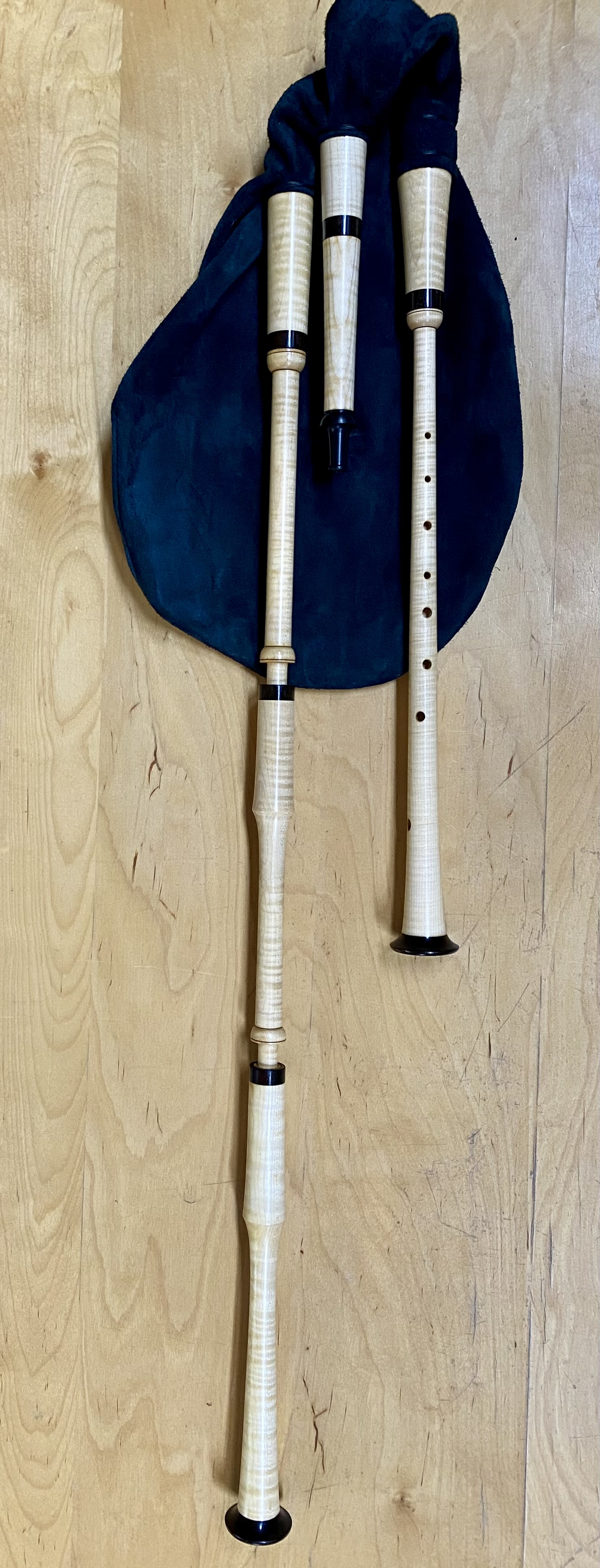 Meine Schulinstrumente fertige ich aus Riegelahorn mit Zierringen aus Ziricote. Die Spielpfeife ist standardmäßig mit einem Wechselstockadapter ausgestattet.