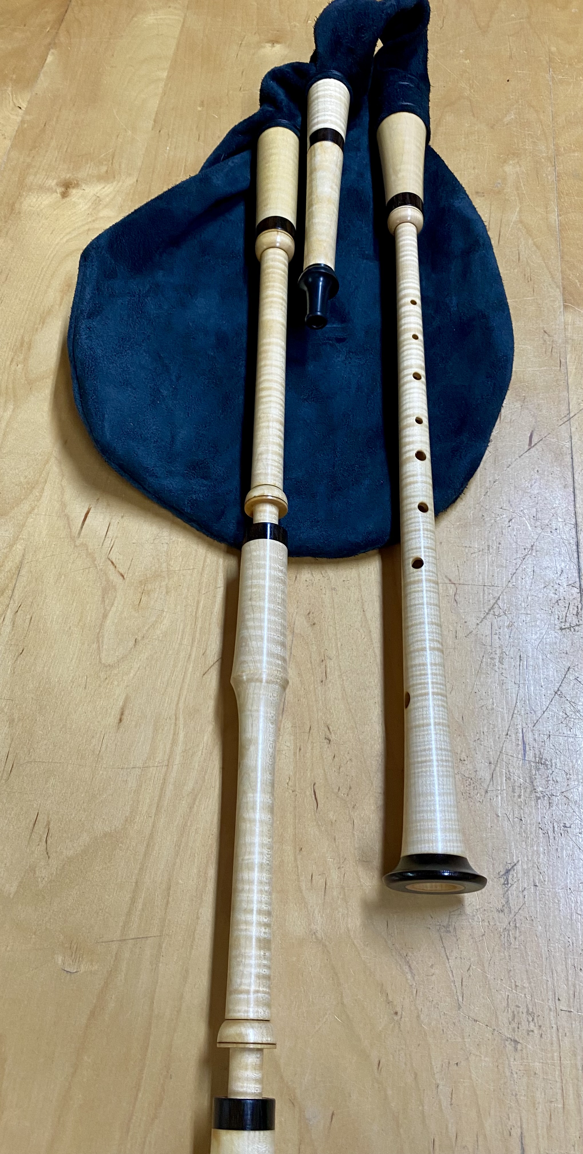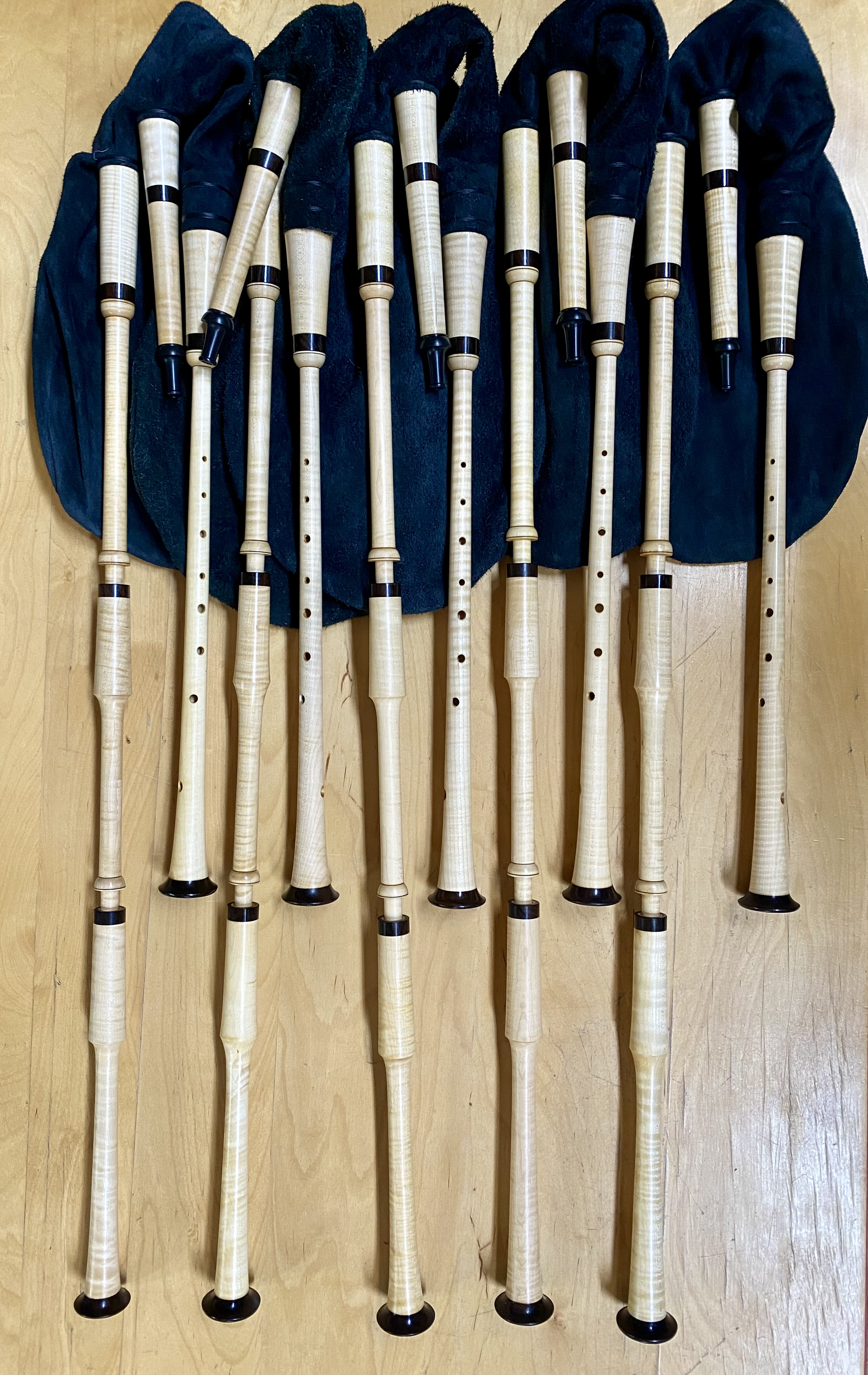 Meine Schulinstrumente fertige ich aus Riegelahorn mit Zierringen aus Ziricote. Die Spielpfeife ist standardmäßig mit einem Wechselstockadapter ausgestattet.